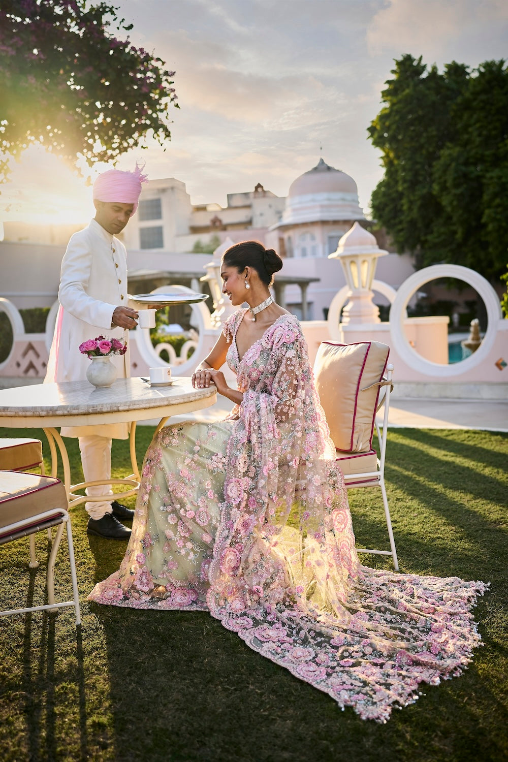 Seema Gujral - Mint Green Multi-Coloured Floral Saree