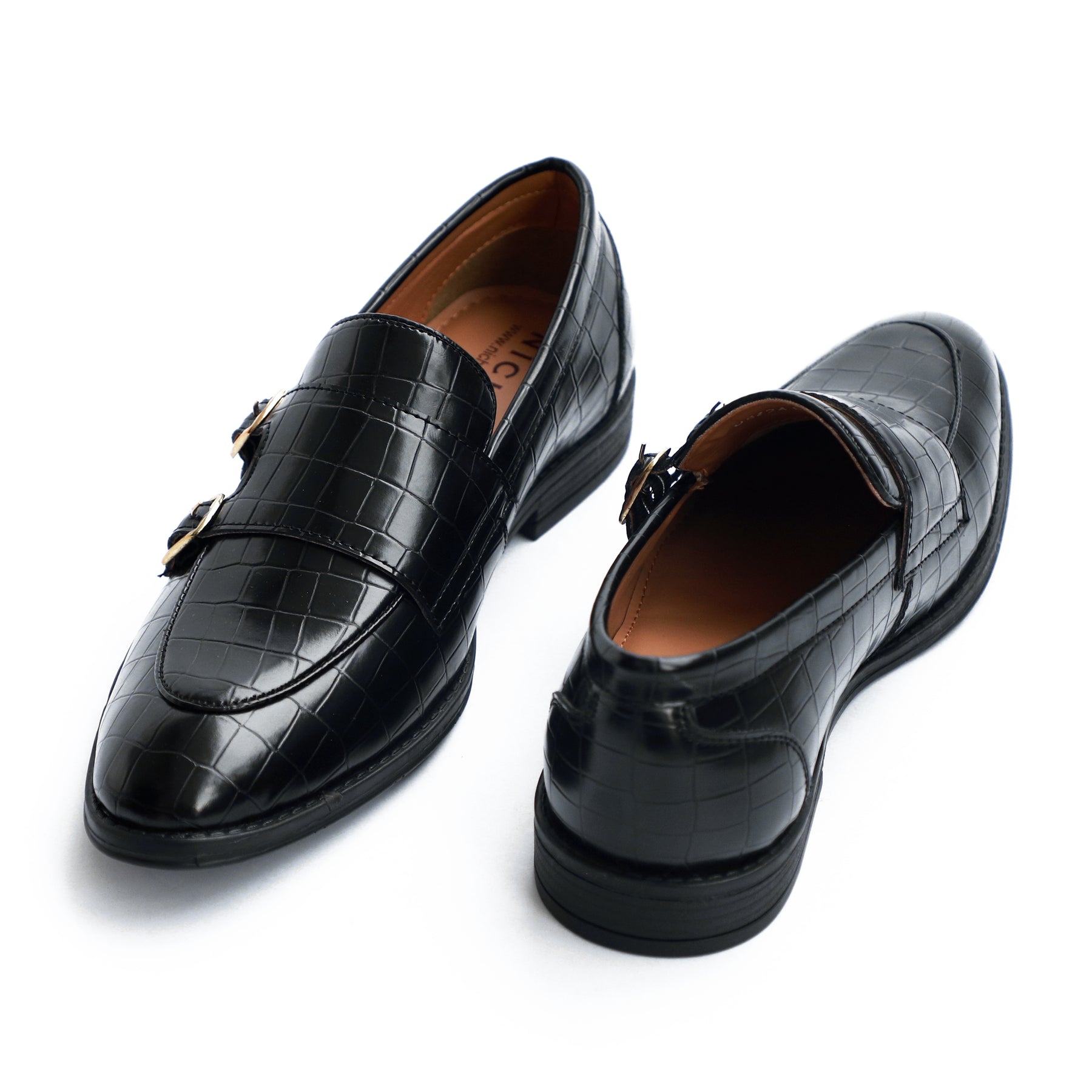 We call this one a – BUCKLE LOVER. Meet this croco pattern luxurious double monk which comes in Slip-on style, just slip into fashion & comfort. Meticulously handcrafted from premium vegan leather, these sophisticated kicks exude confidence and refinement. Make a bold statement in every stride—where elegance meets unmatched craftsmanship.