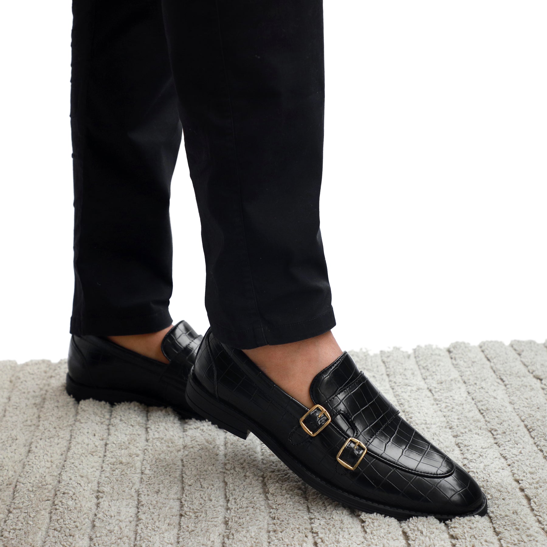 Black Croco Pattern Luxurious Double Monk
