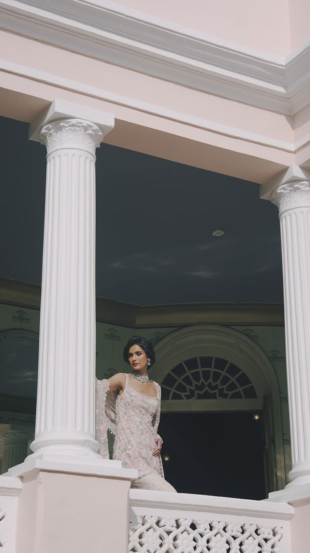 Seema Gujral - Nude Multi-Coloured Three-Dimensional Sharara Set