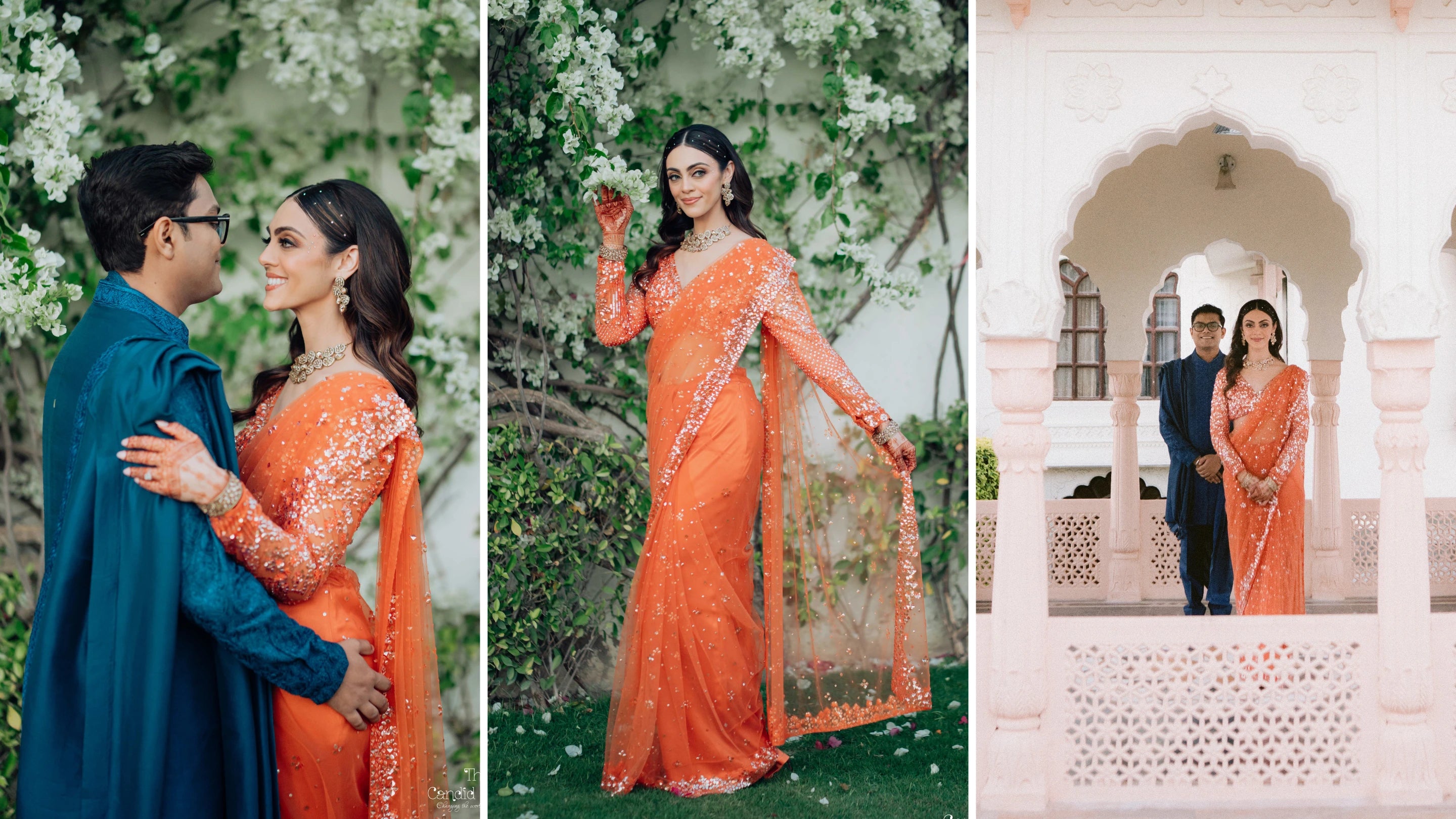 For the Welcome Dinner, Anjali chose a showstopping customized Seema Gujral saree in sunset orange, fully reimagined and tailored by VAMA Designs. The drape was designed to suit her silhouette perfectly and exuded elegance and confidence. It set a glamorous tone for the weekend ahead while making her feel effortlessly beautiful.