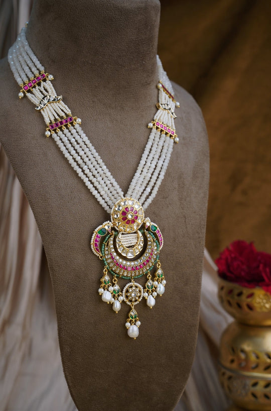 Description: Adorn yourself with the opulence of this long Rajwadi queen necklace, featuring intricate motifs and a cascade of stunning stones. Each element is meticulously crafted to celebrate the rich heritage of Rajwadi design, making this piece a true masterpiece. Perfect for brides or special occasions, it adds a majestic touch to any ensemble, radiating grace and luxury.