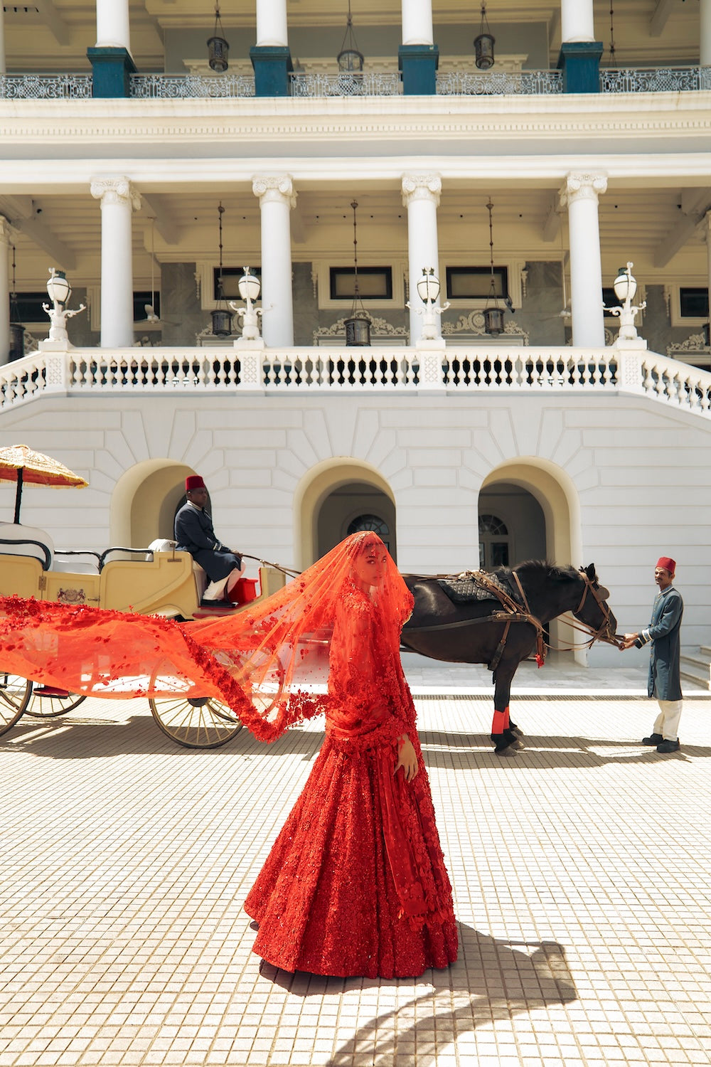 Seema Gujral - Red Three-Dimensional Floral Lehenga Set