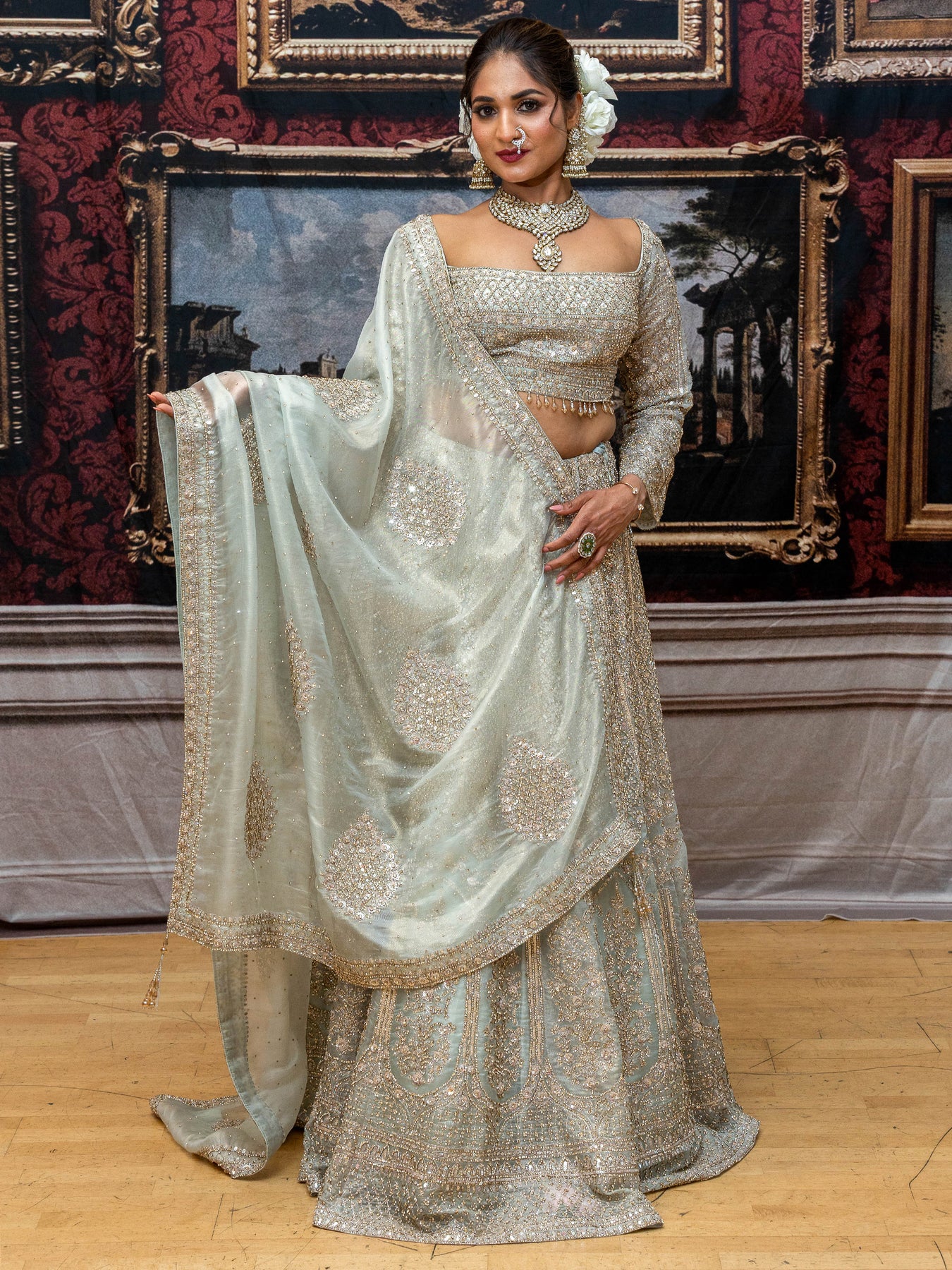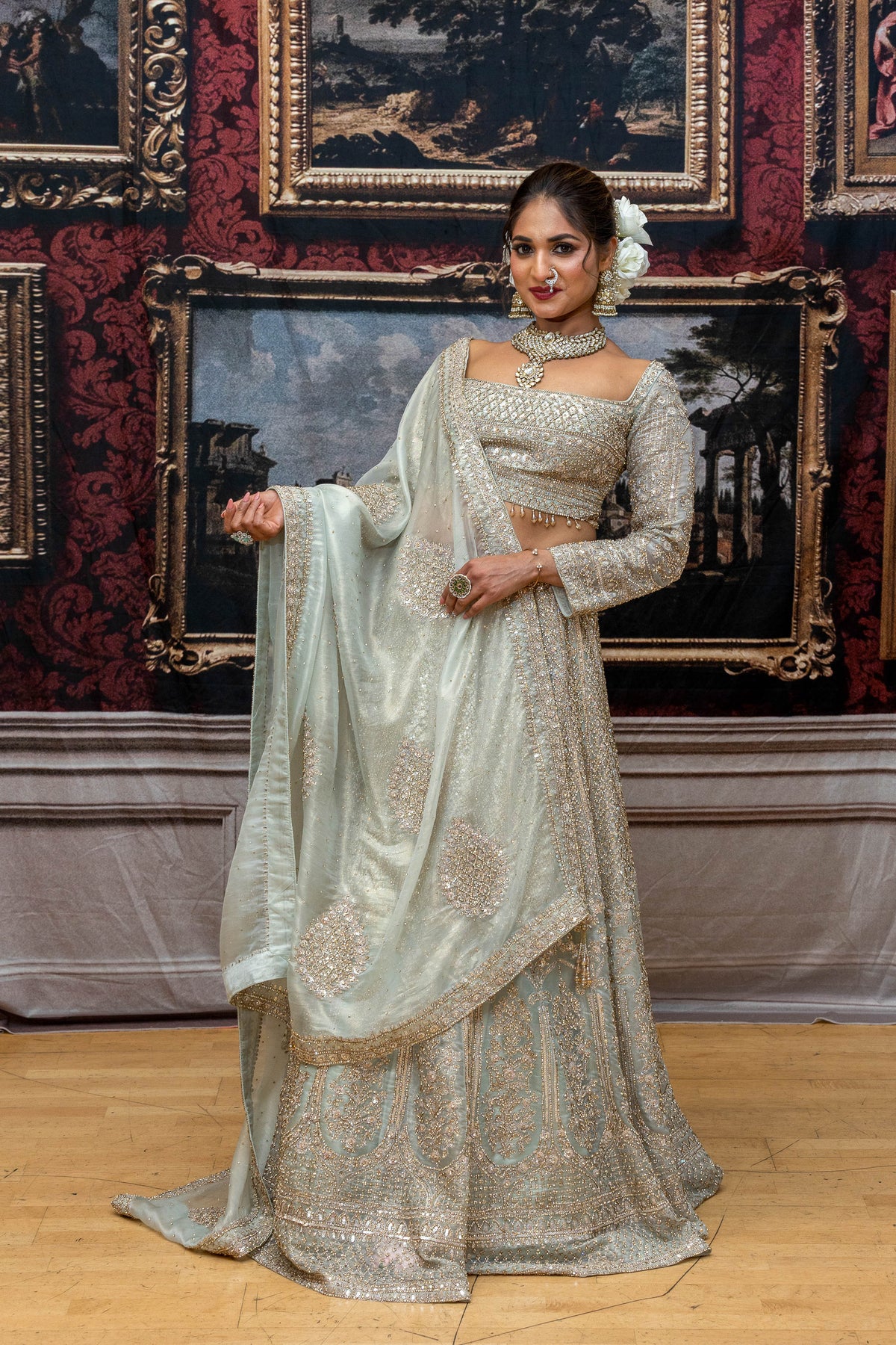 Experience a captivating and stylish transformation with Chahna Lehenga. This exquisite masterpiece features lavish golden embroidery, exuding grace and allure. The full sleeves add an extra touch of elegance, making it the perfect choice for any special occasion or ceremonies. An essential for the sophisticated and fashion-forward individual seeking warmth and charm.