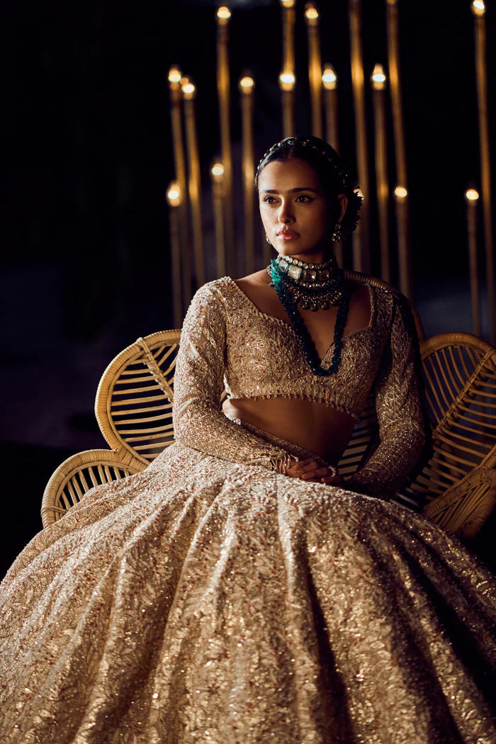 Seema Gujral - Rose Gold Trail Lehenga Set